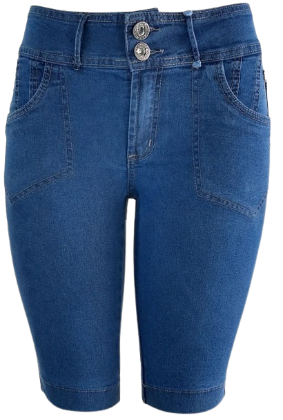A Bermuda Ciclista Eruptionjeans foi confeccionada em jeans com elastano, tem cós largo de cintura alta que modela o corpo, além do mais no cós das costas, tem um pedaço de elástico embutido, para ajustar a cintura das mulheres que tem uma cinturinha e quadris largo, ideal para as que usam tamanhos plus size, tem dois bolsos funcionais na frente e nas costas, no espelho do bolso da frente foi bordado um lindo lacinho de metal e rebite enfeite para ornar a parte da frente. No bolso das costas, foi trabalhado uma filigrana com figura de de coração, muito lindo!! O comprimento é logo acima do joelho.